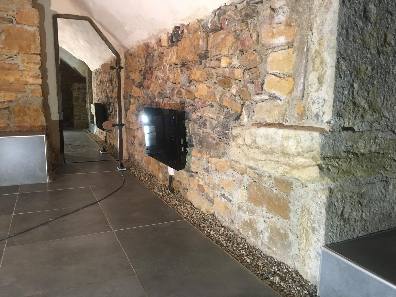 Il en très bon état, conforme aux normes en vigueur. Il offre des volumes chaleureux et le charme de l'ancien a été préservé (pierres apparentes, plafond à la française). Le local dispose également de deux caves aménagées en sous-sol (salle de réunion et pièce de rangement), d’une kitchenette et d’un sanitaire.