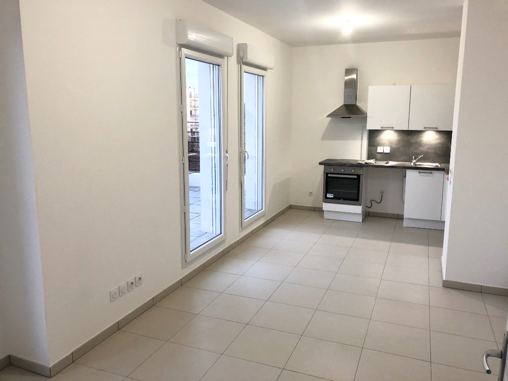 Rue Jules Valensaut, beau T2 de 39.05m² en étage avec ascenseur comprenant une entrée , un séjour avec une cuisine ouverte équipée donnant accès à une terrasse de 23m², une chambre, une salle de douche, des wc. L'appartement dispose d'un garage en sous-sol. Plafond Pinel
