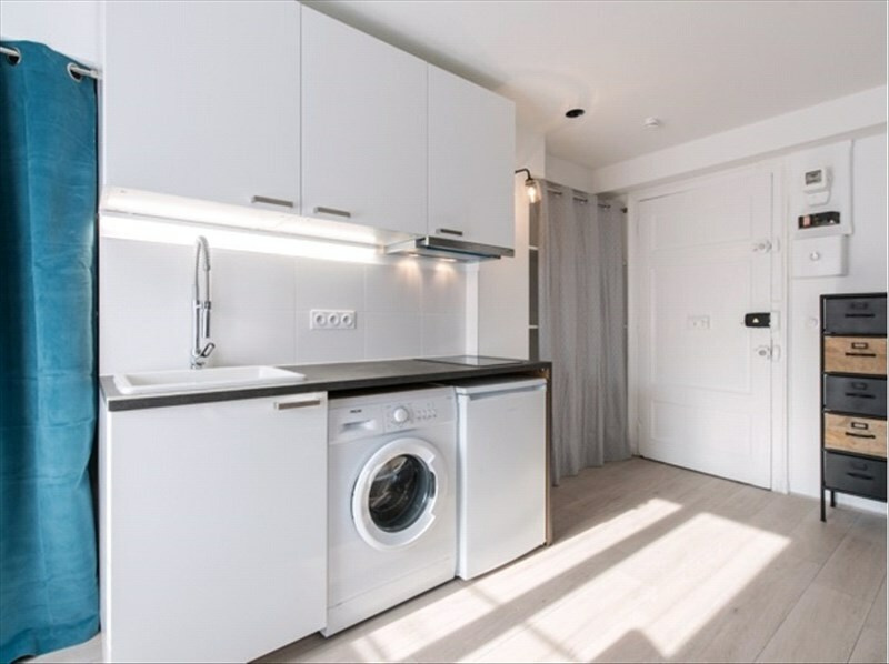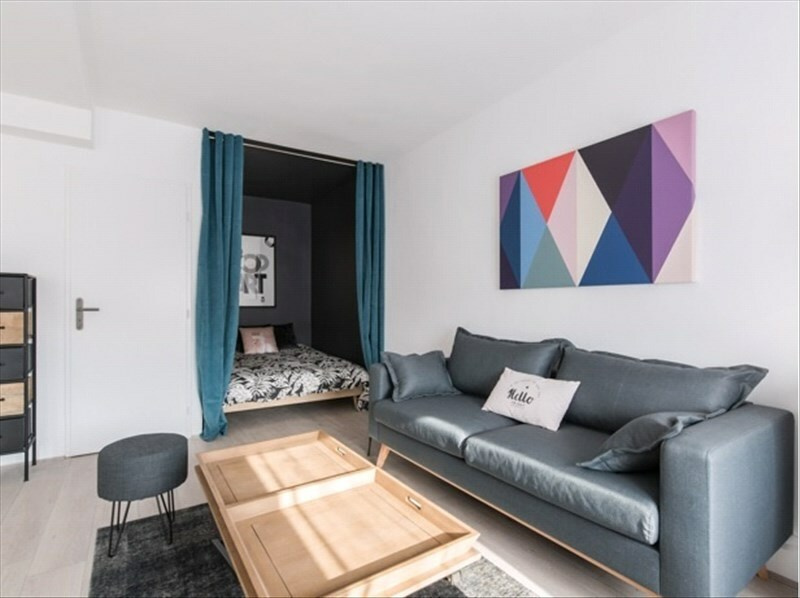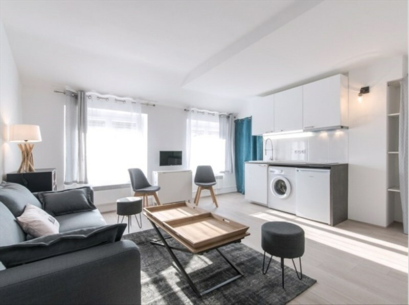 Rue d'Anvers, dans un immeuble ancien, beau T1 de 28.1m² entièrement rénové et meublé comprenant une pièce de vie avec une cuisine ouverte équipée, un coin nuit en alcôve, une salle de douche, des toilettes. Proche transports, écoles et commerces.