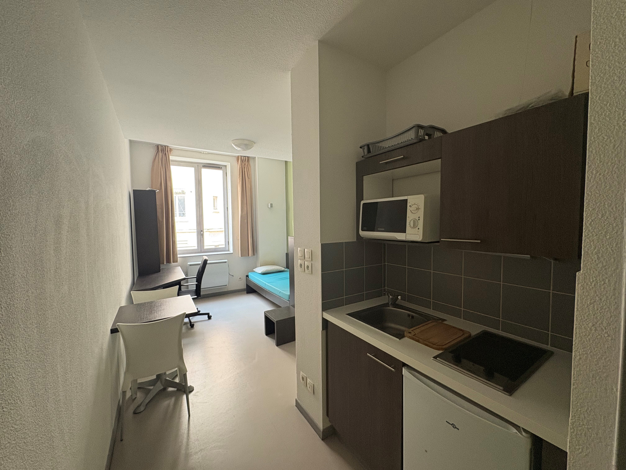 Au pied du métro Valmy, beau T1 de 22,64m² entièrement meublé et équipé comprenant une entrée, un séjour avec une cuisine ouverte équipée, un coin nuit en alcôve, une salle de douche avec wc. Rénové, cet appartement est lumineux et au calme. Proche des transports , écoles et commerces.