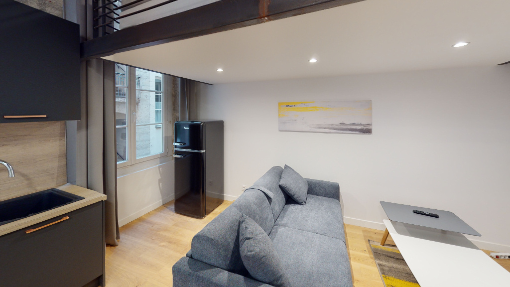 Au pied de l'Opéra, dans un immeuble ancien, magnifique T1 de 33,58m² entièrement rénové et meublé comprenant une belle pièce de vie de 22m² avec une cuisine ouverte équipée, un coin nuit en mezzanine, une salle de douche avec un toilette. Parfait état, au pied des transports, écoles et commerces.