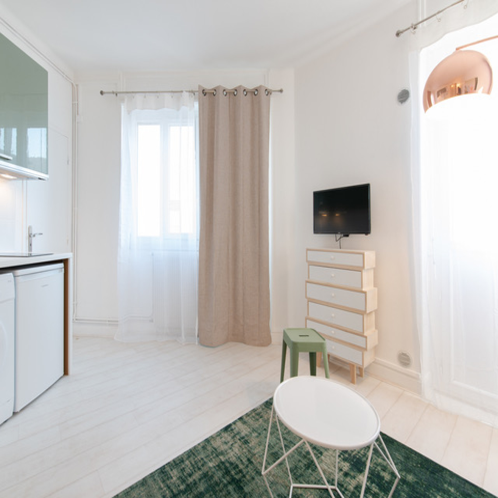 Proche tram T4 et T2 , rue Pierre Delore, très beau T2 meublé de 30.71m² comprenant une pièce de vie avec cusine ouverte équipée, un coin nuit, une salle de douche avec des wc.