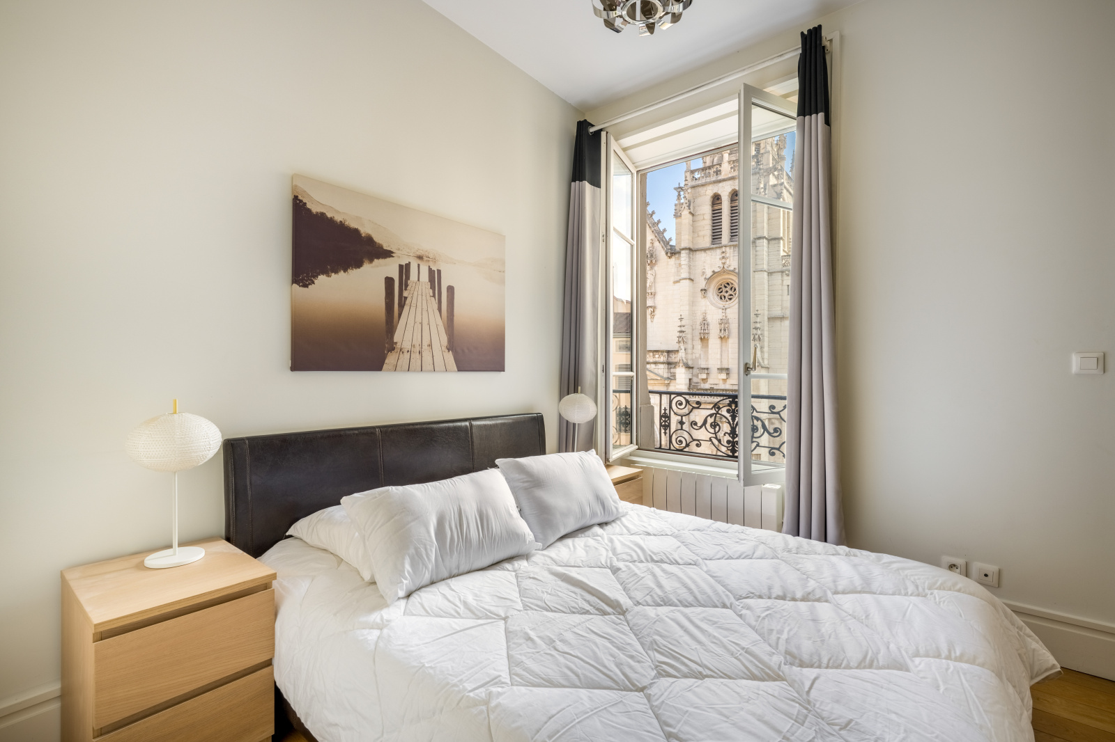 Place Saint-Nizier, au sein d’un très bel immeuble ancien, en étage élevé avec ascenseur, superbe emplacement pour ce T3 de 65.1m² entièrement rénové et meublé comprenant une entrée avec placard, un séjour salle à manger avec un balcon donnant sur l’Eglise Saint-Nizier, une cuisine ouverte équipée, une arrière cuisine/buanderie, 2 chambres avec rangements, une salle de bains, un wc. Très lumineux, cet appartement est en parfait état. L’immeuble dispose également d’un local vélos fermé.