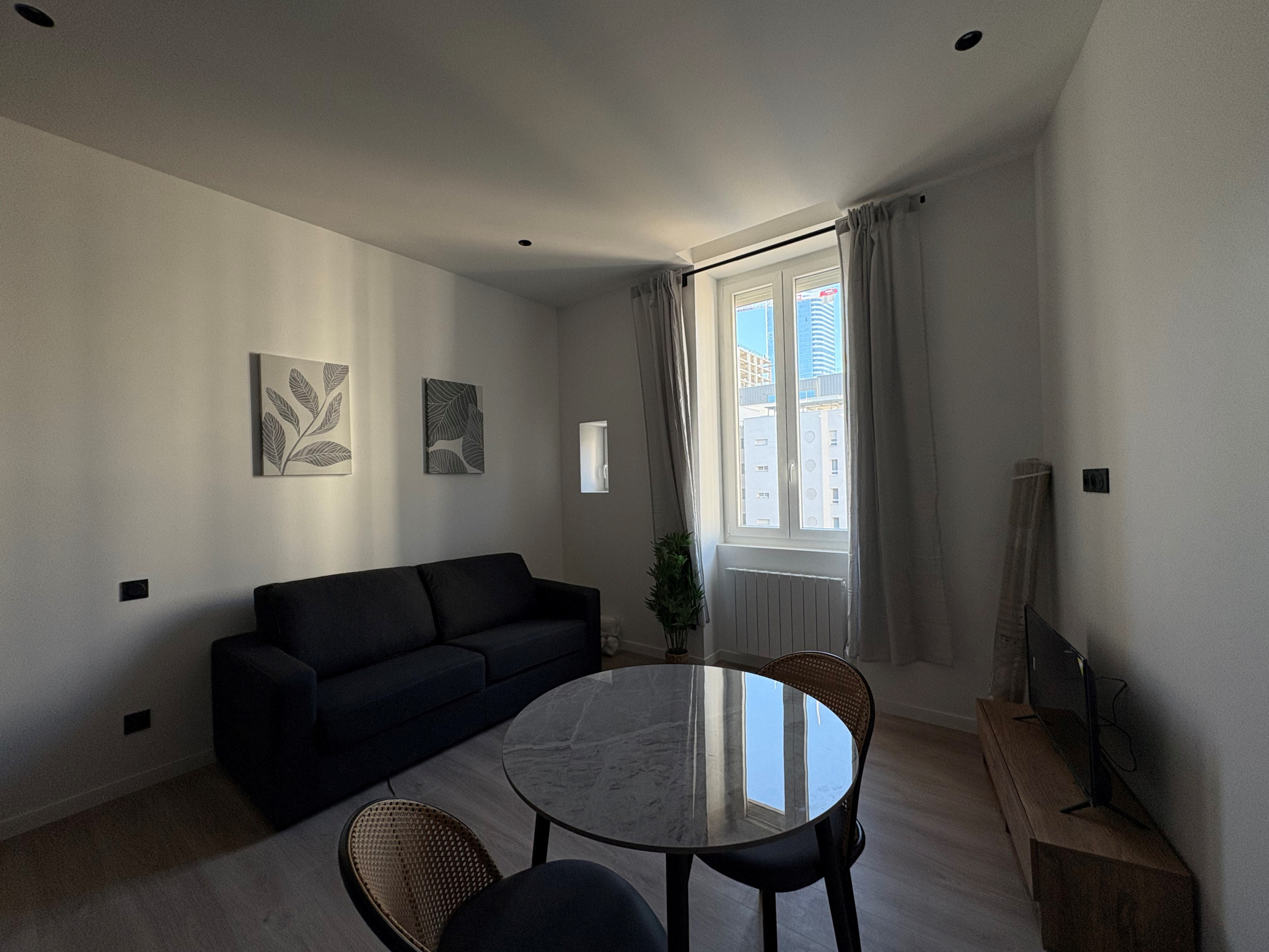 Rue Ney, dans un immeuble ancien, T2 meublé et rénové de 21.82m² comprenant une entrée, un cuisine ouverte, une pièce de vie avec un coin nuit, une salle d'eau avec toilettes. Proche transports, écoles et commerces.