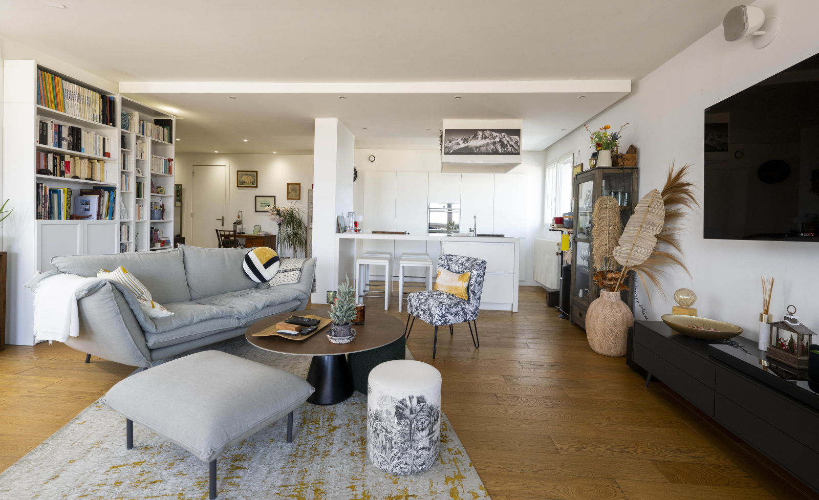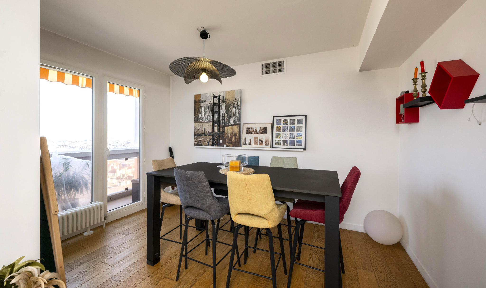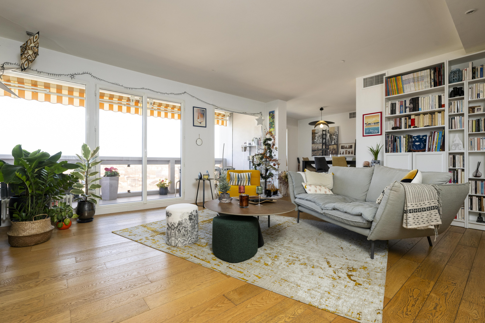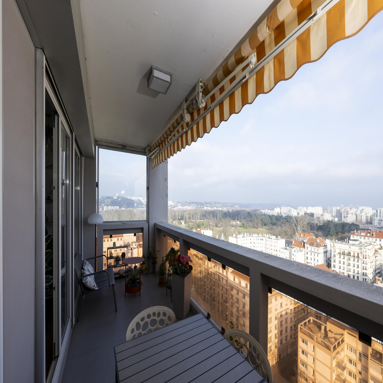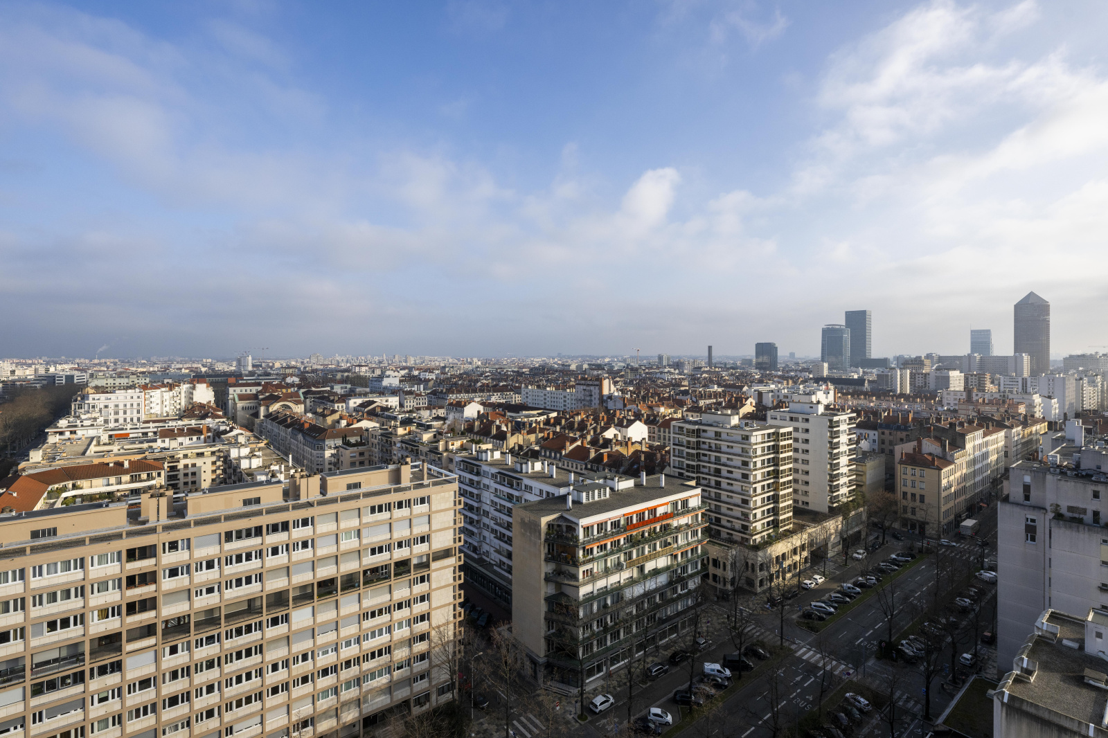 Proche du Parc de la Tête d'or, au 17ème et dernier étage d'un immeuble de standing avec accès PMR, très bel appartement contemporain de 111,40m² avec un panorama à 180° sur les monts du Lyonnais ainsi que sur le Parc. Il se compose d'une entrée avec un dressing, un grand séjour - salle à manger (poss 3ème chambre) avec cuisine ouverte équipée donnant accès à une terrasse, une buanderie, deux grandes chambres dont une avec un dressing aménagé, une salle de bains avec douche et baignoire, un wc indépendant. Un garage en sous-sol ainsi qu'une cave à vins complètent l'ensemble. L'appartement est climatisé. Immeuble en copropriété avec un local vélo sécurisé, 250 lots, Honoraires à la charge du vendeur.