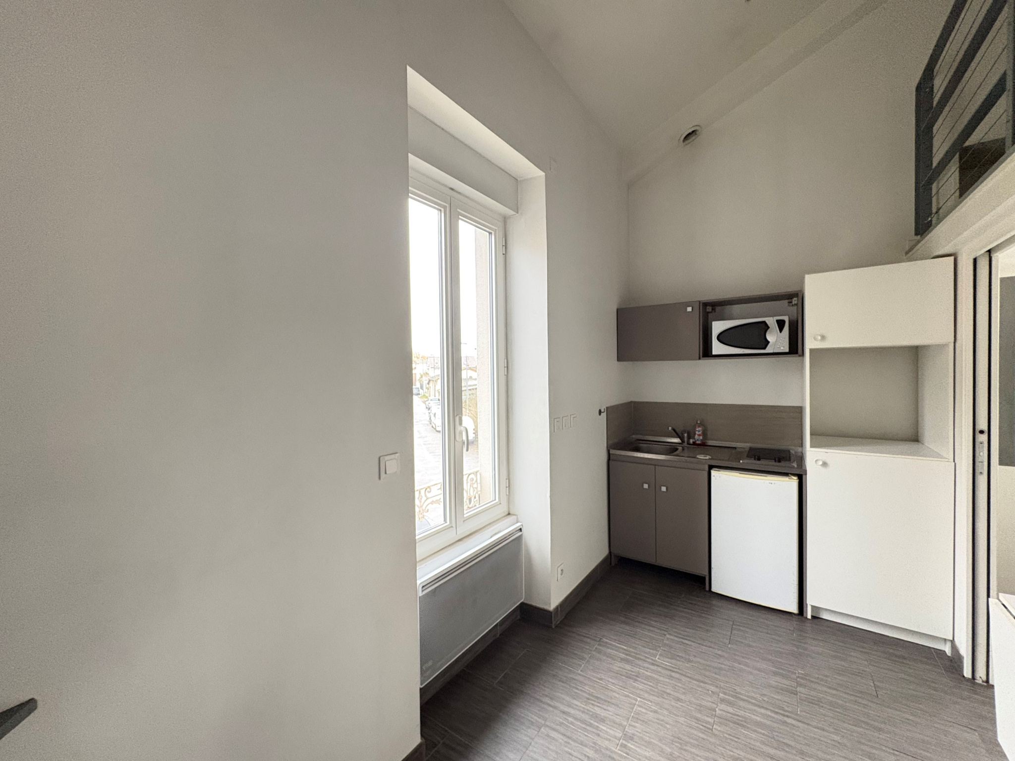 17 Rue René Leynaud, au rez-de-chaussée, studio meublé de 15.57m² comprenant une entrée, une pièce de vie avec une kitchenette équipée, et une salle de douche avec wc.
