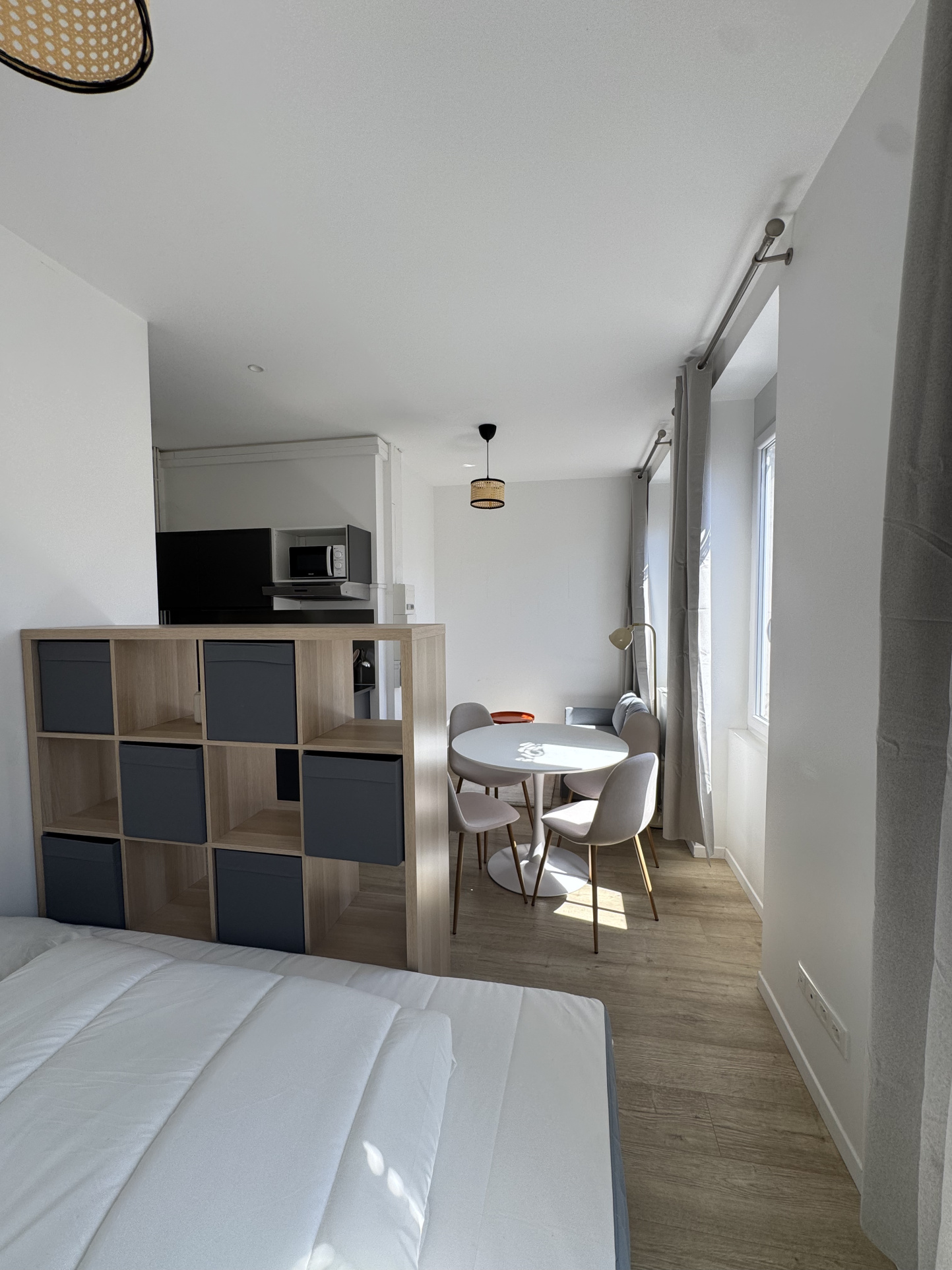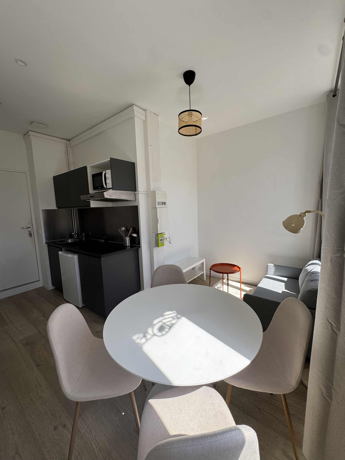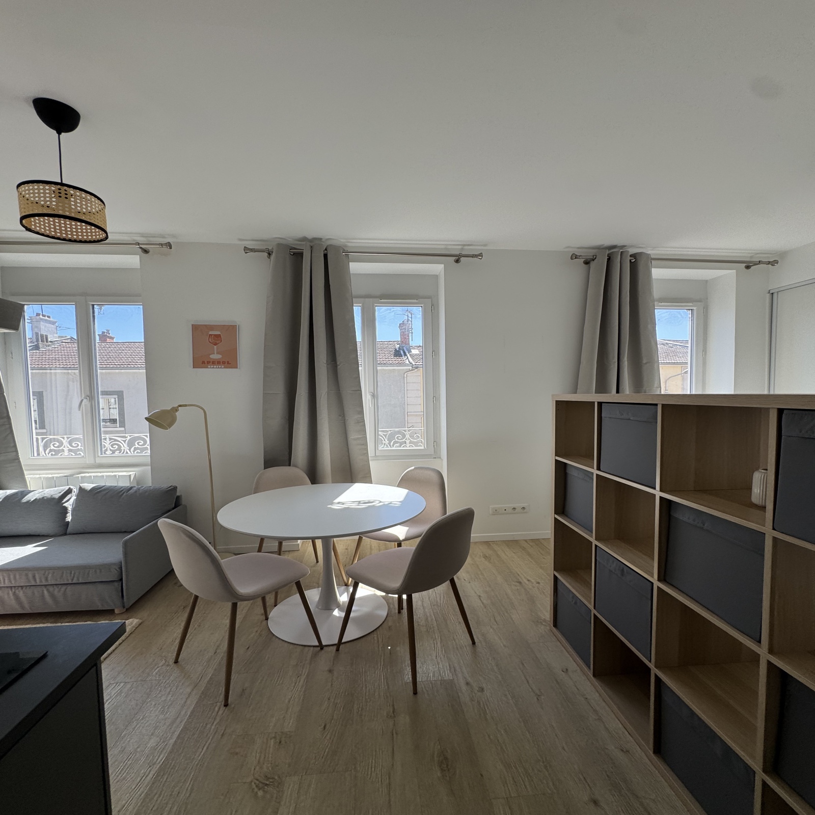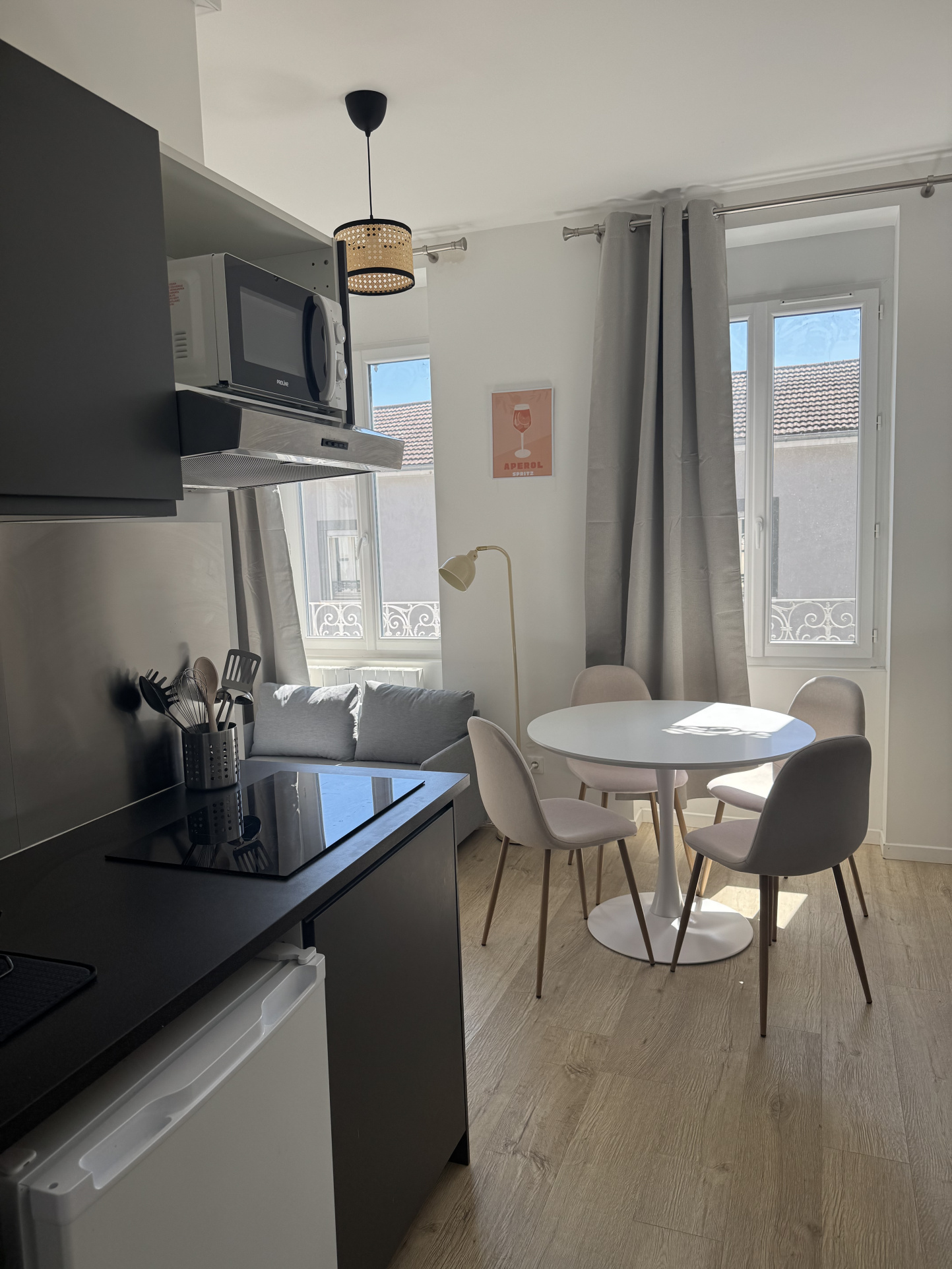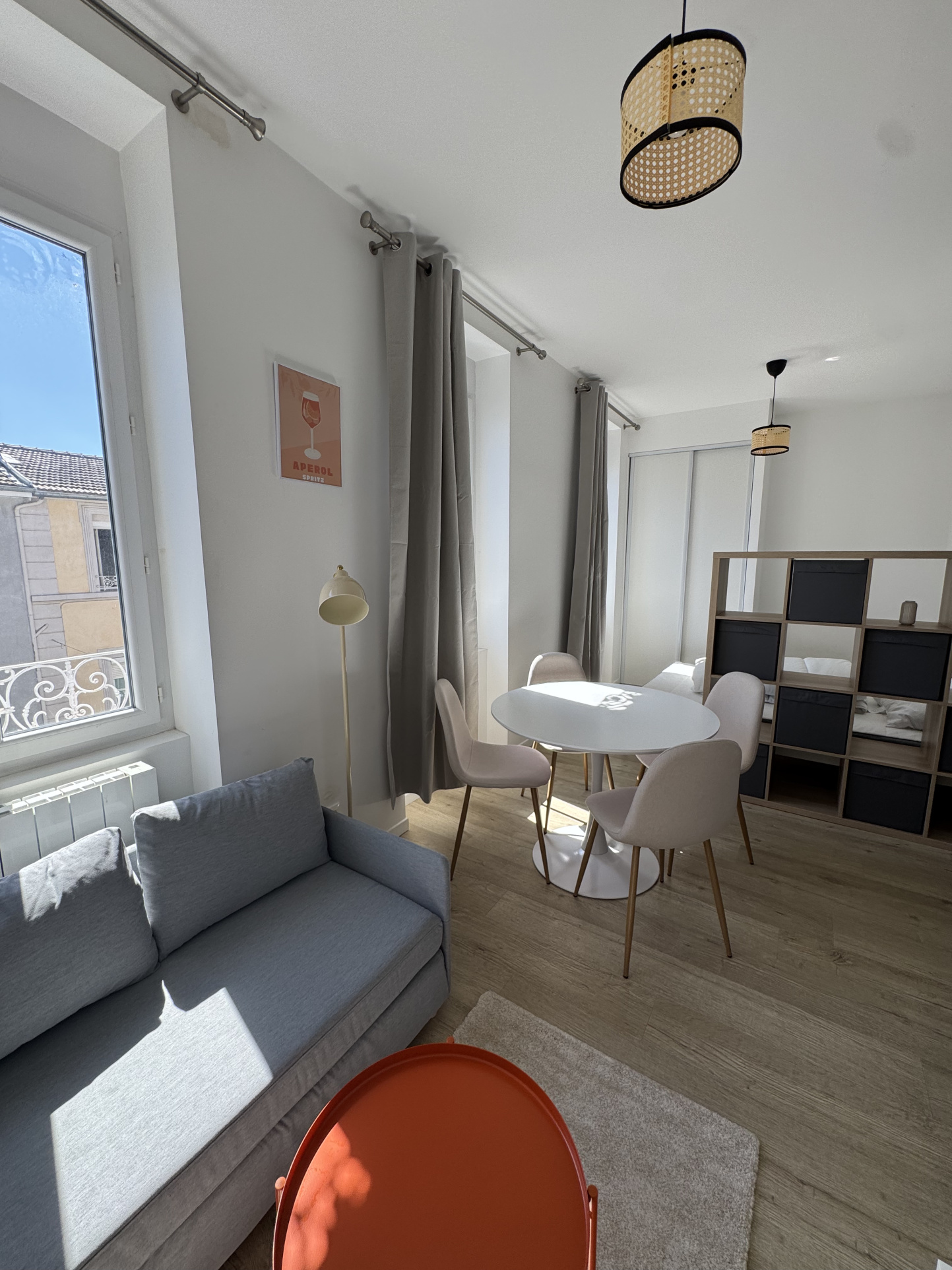 Cours Richard Vitton, dans un petit immeuble ancien, très beau studio de 23.05m², entièrement rénové et meublé comprenant une belle pièce de vie avec une cuisine ouverte, une salle de douche avec un wc. Au pied des transports et commerces.