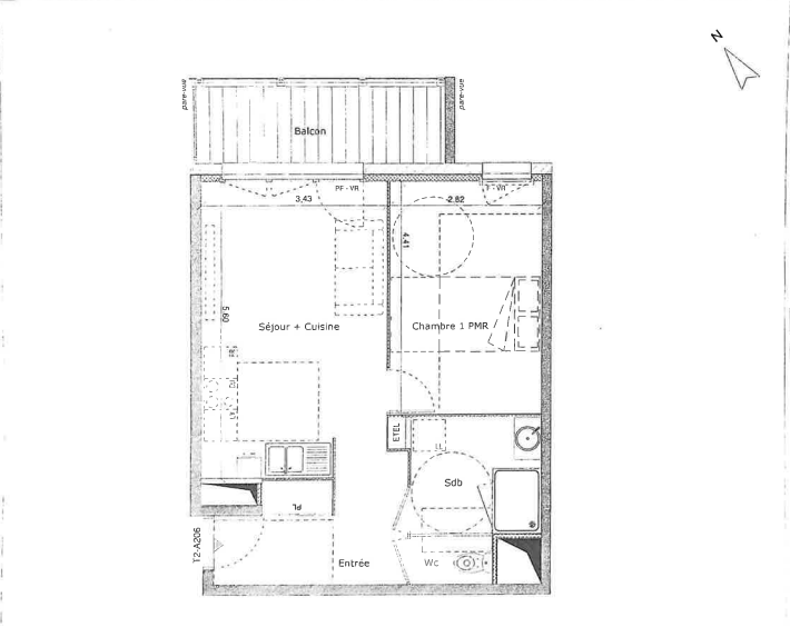 Situé de la Faucille, appartement de type T2 de 44.91m² au 2ème étage, comprenant une entrée avec placard, ouvrant sur un séjour avec cuisine semi-équipée, une chambre, une salle de bain et un wc séparé. L'appartement dispose d'un balcon d'environ 7m² et d'une place de parking en sous-sol inclus. Plafond pinel.
