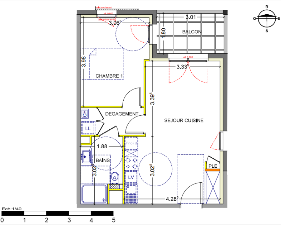 Appartement 2 pièce(s) 1 chambre(s) 44.12 m²