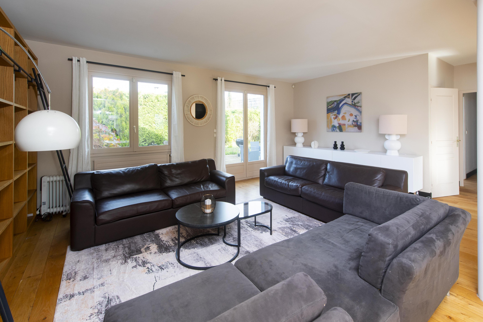 Rue Chatelain, très belle maison en location meublée, rénovée de 149m² avec 600m² de jardin. Au rez-de-chaussée : une entrée , une très belle pièce de vie/ salle à manger de 80m² ouvrant sur terrasse et jardin, une cuisine americaine entièrement équipée, une chambre, une buanderie, des toiletttes. A l'étage, 3 chambres dont une suite parentale de 20m² avec dressing , salle de bains avec baignoire et douche, une salle de bains , des toilettes. La maison dispose d'un grand sous-sol de 90m² avec cave et buanderie et pouvant acceuillir 2 voitures. Parfait état, nombreux rangements, proche transports , écoles et commerces.