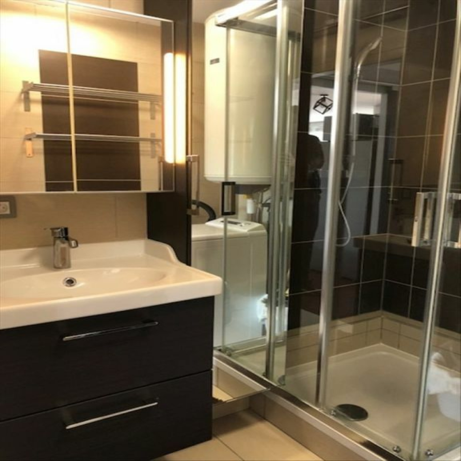 Chassieu centre, dans un immeuble récent de standing, beau T2 meublé de 43.86m² en étage avec ascenseur comprenant une entrée, un séjour avec une cuisine ouverte équipée donnant accès à un balcon, une chambre, une salle de douche et des WC. L'appartement dispose d'un garage double en sous-sol. Calme et lumineux, proche transports et commerces.