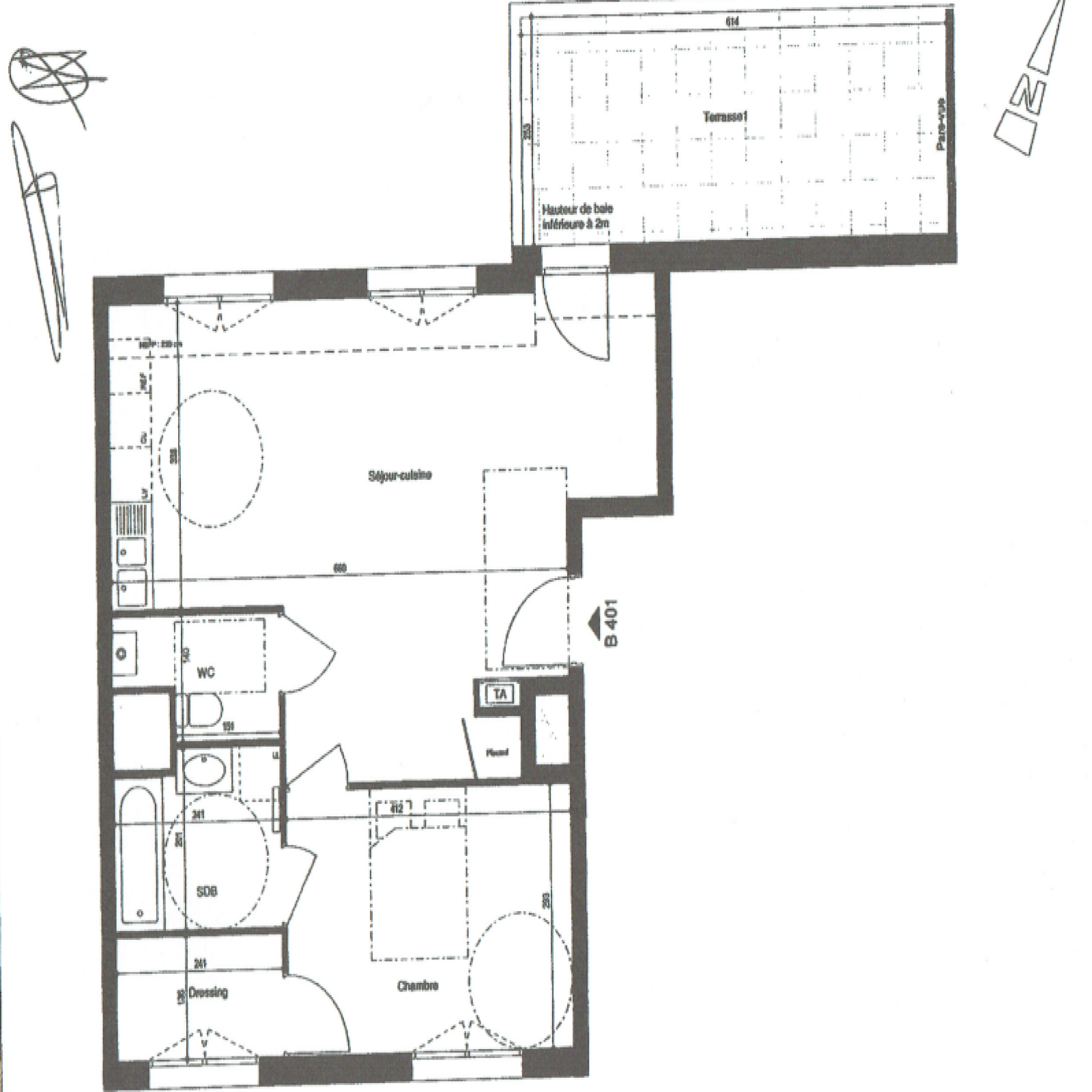 Rue Faubourg Montmelian, appartement T2 de 55.48m², en attique au 4ème et dernier étage. L'appartement est composé d'une entrée, avec un grand séjour, une cuisine ouverte équipée, donnat sur une terrasse de 15.54m², une chambre avec dressing, une salle de bain et des toilettes. Il dispose d'un parking double en sous-sol. Plafond Pinel.