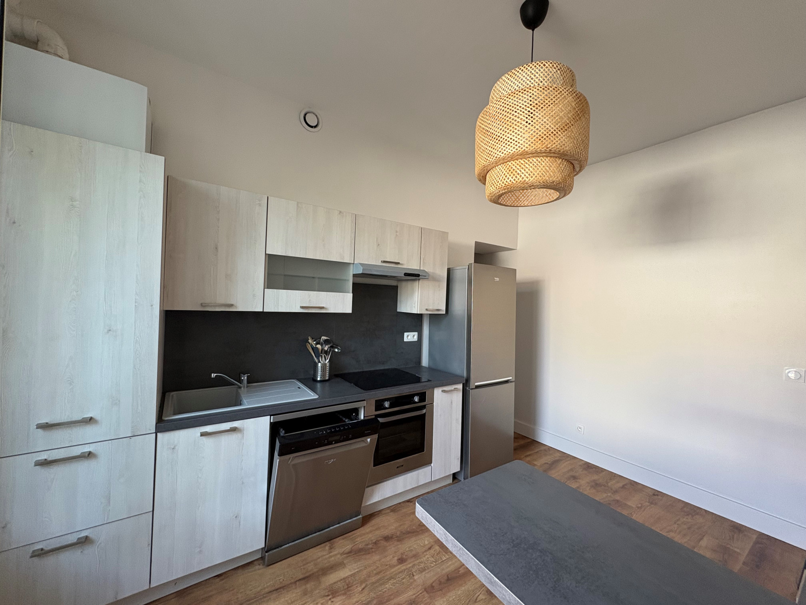 Rue des Essarts, Une maison individuelle de 62m² de type 3, fonctionnelle et bien agencée. Au rez-de-chaussée, une cuisine entièrement aménagée et équipée avec électroménager (plaque à induction, hotte, four, réfrigérateur-congélateur, lave-vaisselle), séjour avec placards intégrés, salle d’eau avec lave-linge et WC séparé. Une cave aménageable en buanderie complète ce niveau. À l’étage, vous disposez de deux chambres avec placards intégrés Une terrasse fermée par un portillon vient compléter ce bien.
