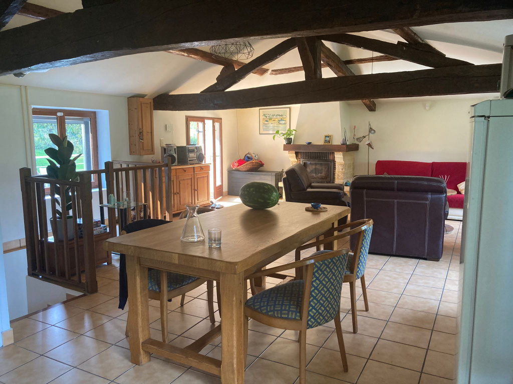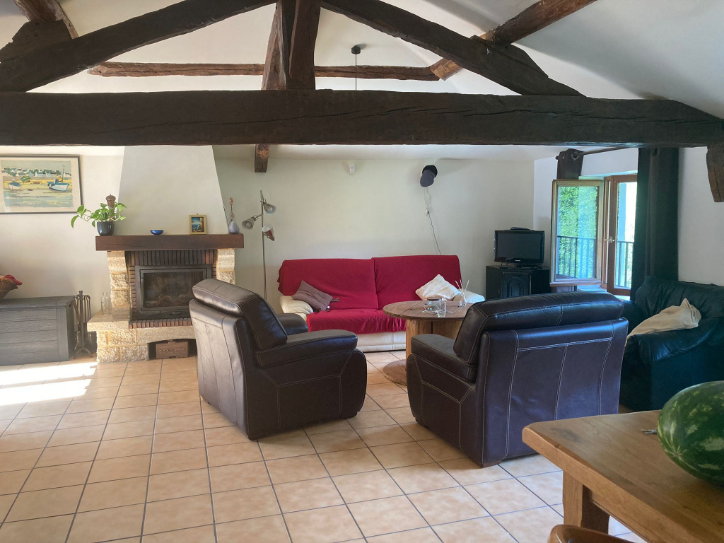 Sur la commune de Saint Just d'Avray, route de la vallée, dans un cadre bucolique, belle maison de 95m² sur terrain clos, au pied de la rivière, comprenant sur 2 niveaux, une entrée, un séjour salle à manger ouverte sur une cuisine aménagée, une salle de douche avec wc. A l'étage inférieur, 3 chambres, une salle de bains, un wc. Cette maison dispose également d'un garage ainsi que d'une buanderie.