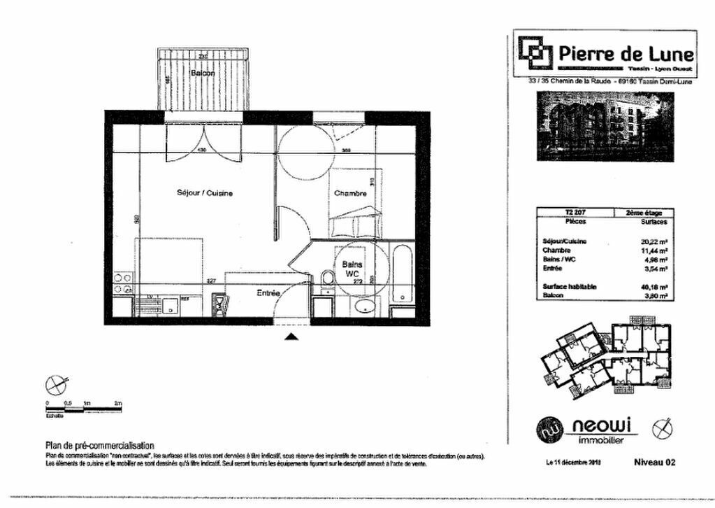 Chemin de la Raude - Appartement T2 au 2ème étage comprenant une entrée, une pièce principale avec cuisine ouverte équipée donnant accès à un balcon de 3.80m² et une salle de bain avec des WC. L'appartement dispose d'un garage double.