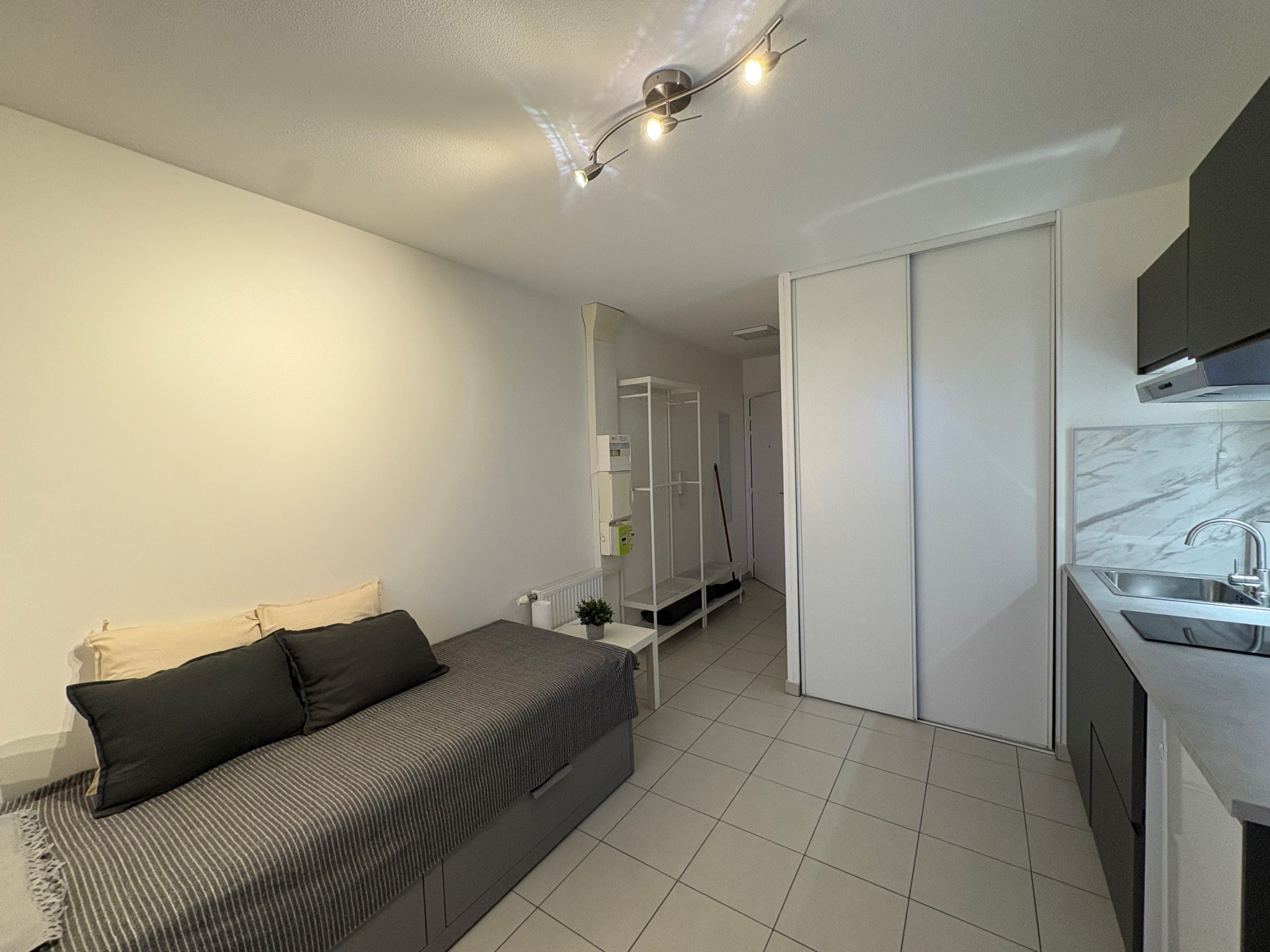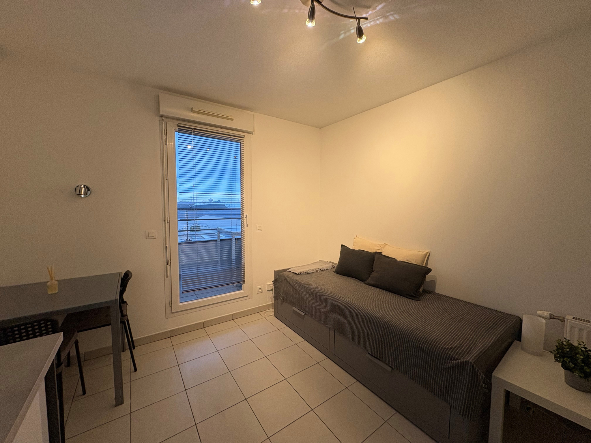 Rue Jules Guesde, dans un immeuble récent de standing, au 4ème et dernier étage avec ascenseur, beau studio meublé de 17.93m² comprenant une pièce de vie avec kitchenette ouvrant sur un balcon, une salle de douche avec des toilettes. Chauffage inclus. Proche tram T4 arrêt ''LA BORELLE'.