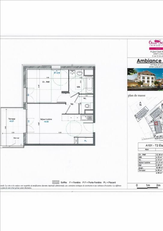 Route de Lyon, très beau T2 neuf de 43.03m² comprenant une entrée, un séjour avec une cuisine ouverte équipée donnant accès à une terrasse de 6,90m², une chambre avec une salle de douche, des toilettes. L'appartement dispose d'un parking . Plafond Pinel.
