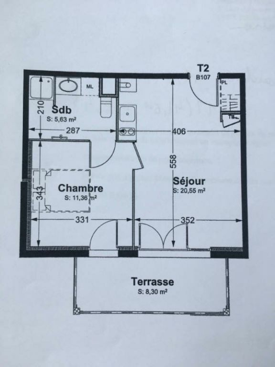 Appartement 2 pièce(s) 1 chambre(s) 37.54 m²