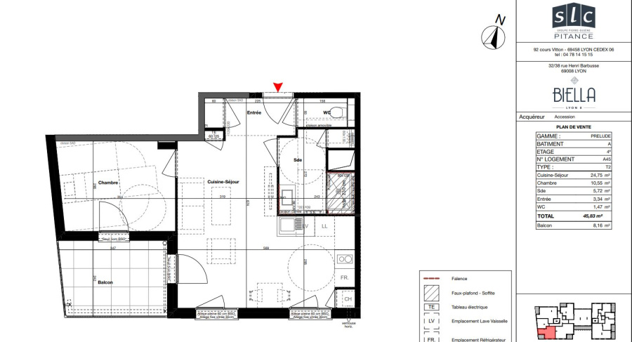 Appartement 2 pièce(s) 1 chambre(s) 45.83 m²