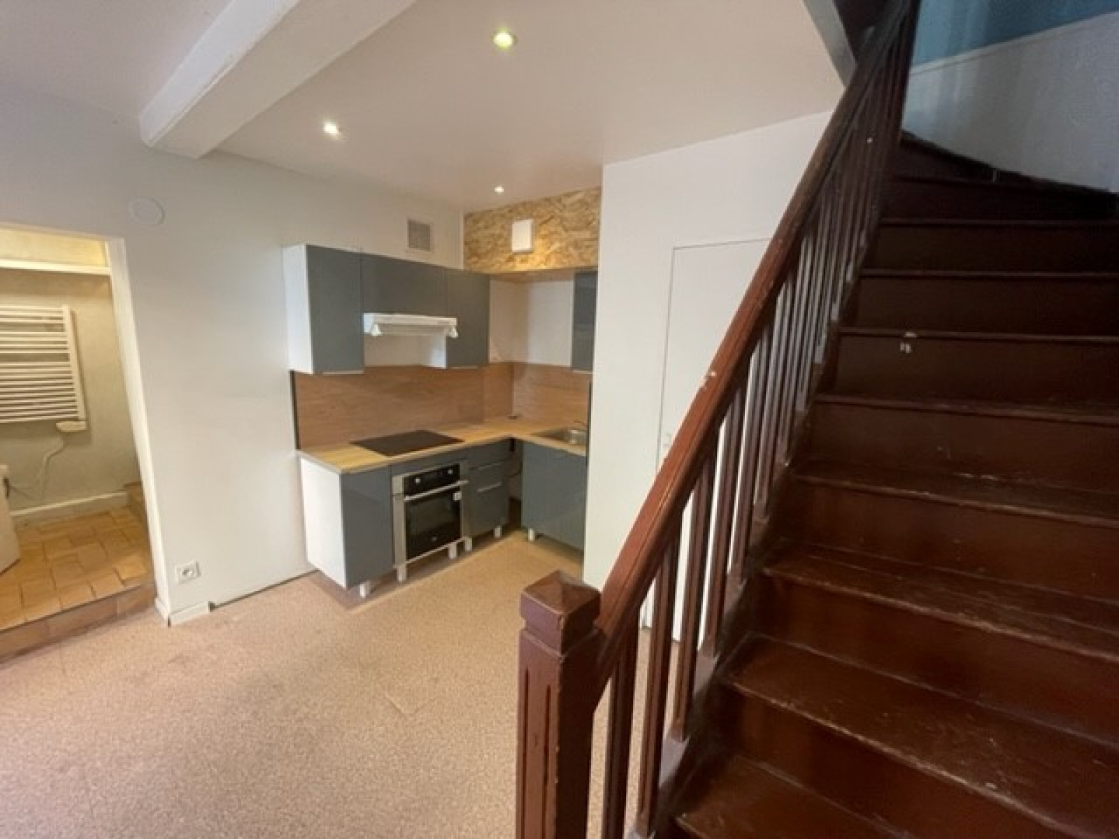 Dans le centre de Saint Genis Laval, petite maison individuelle de 47.37m² sur 2 niveaux comprenant une entrée indépendante donnant accès à une cuisine aménagée , une salle de douche , un wc. A l’étage un séjour, une chambre avec rangements. Calme.
