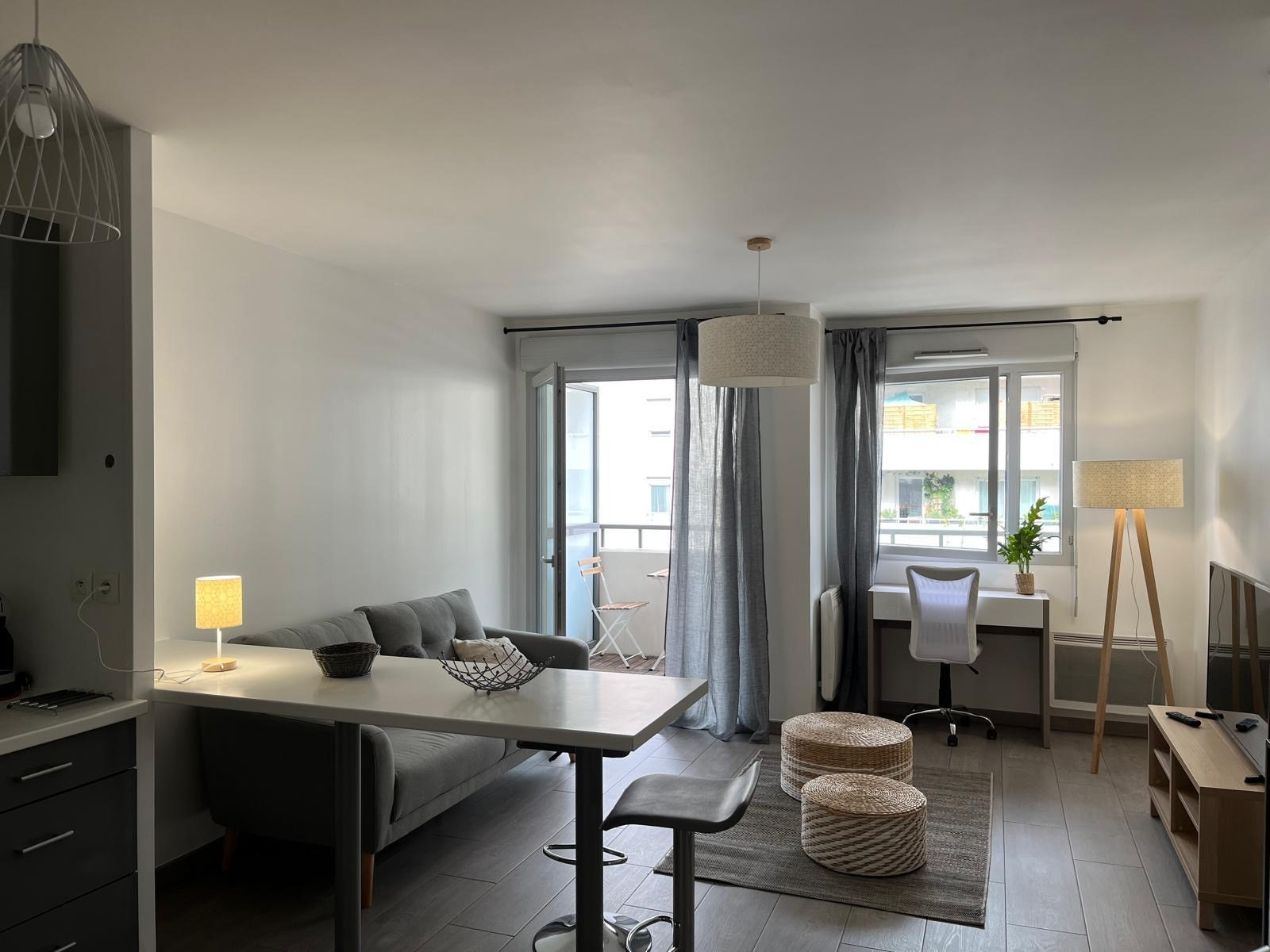 Rue Colin, dans un immeuble récent de bon standing, beau T2 meublé de 44,24m² en étage avec ascenseur comprenant une entrée, un séjour avec une cuisine ouverte aménagée donnant accès à un balcon, une chambre, une salle de bains , des toilettes. L'appartement dispose d'un garage en sous-sol .