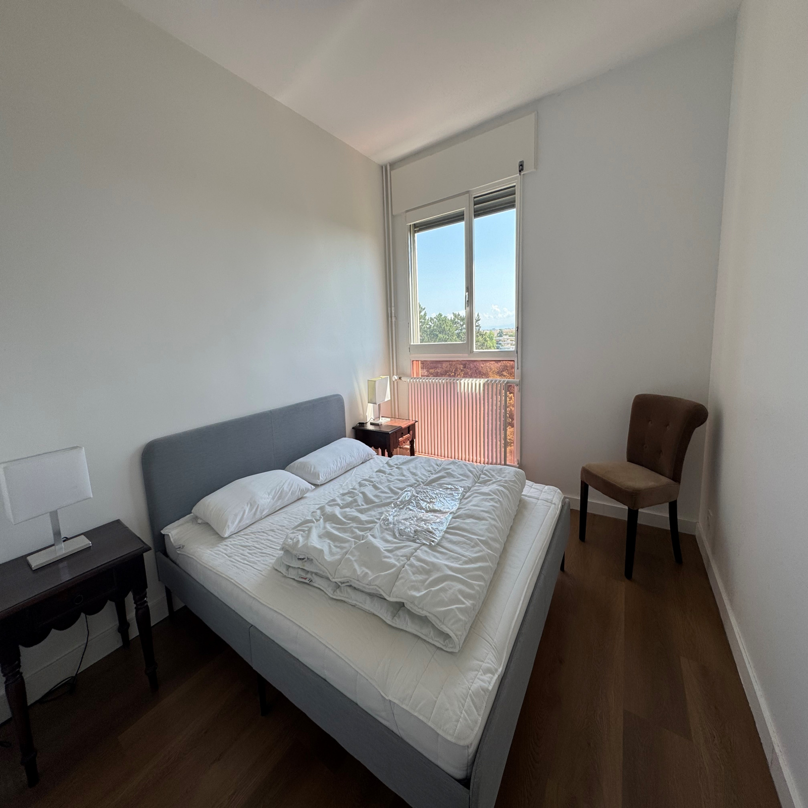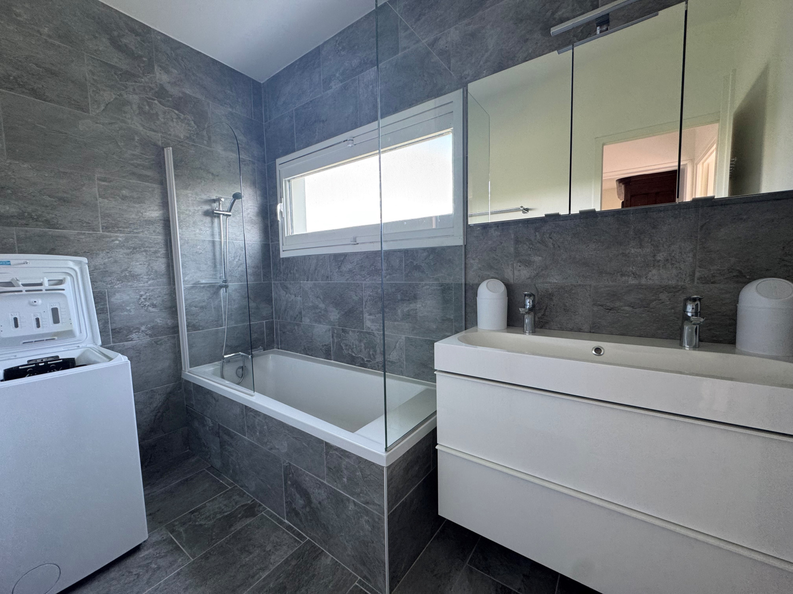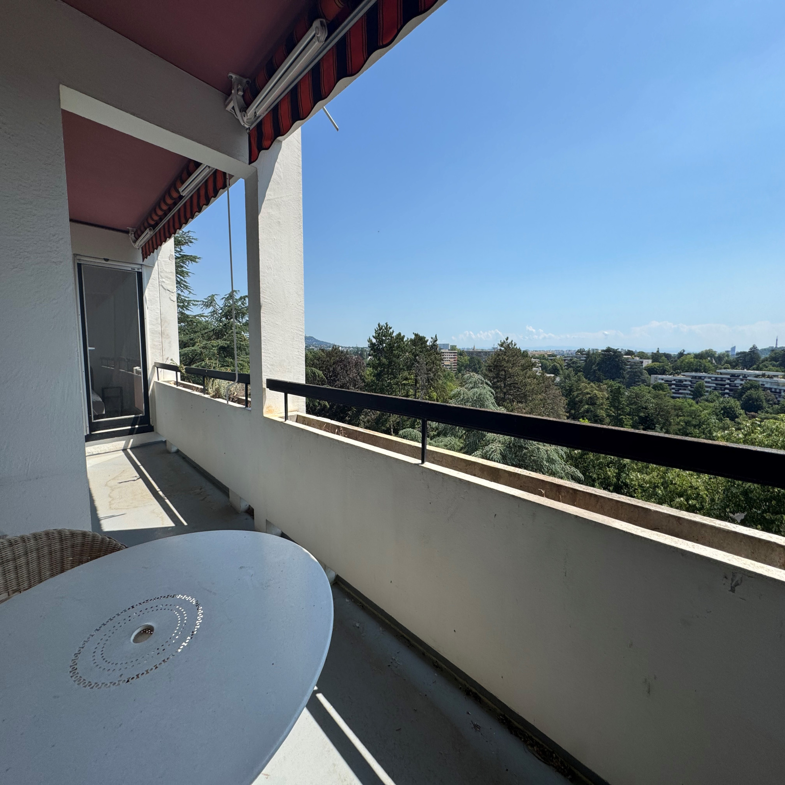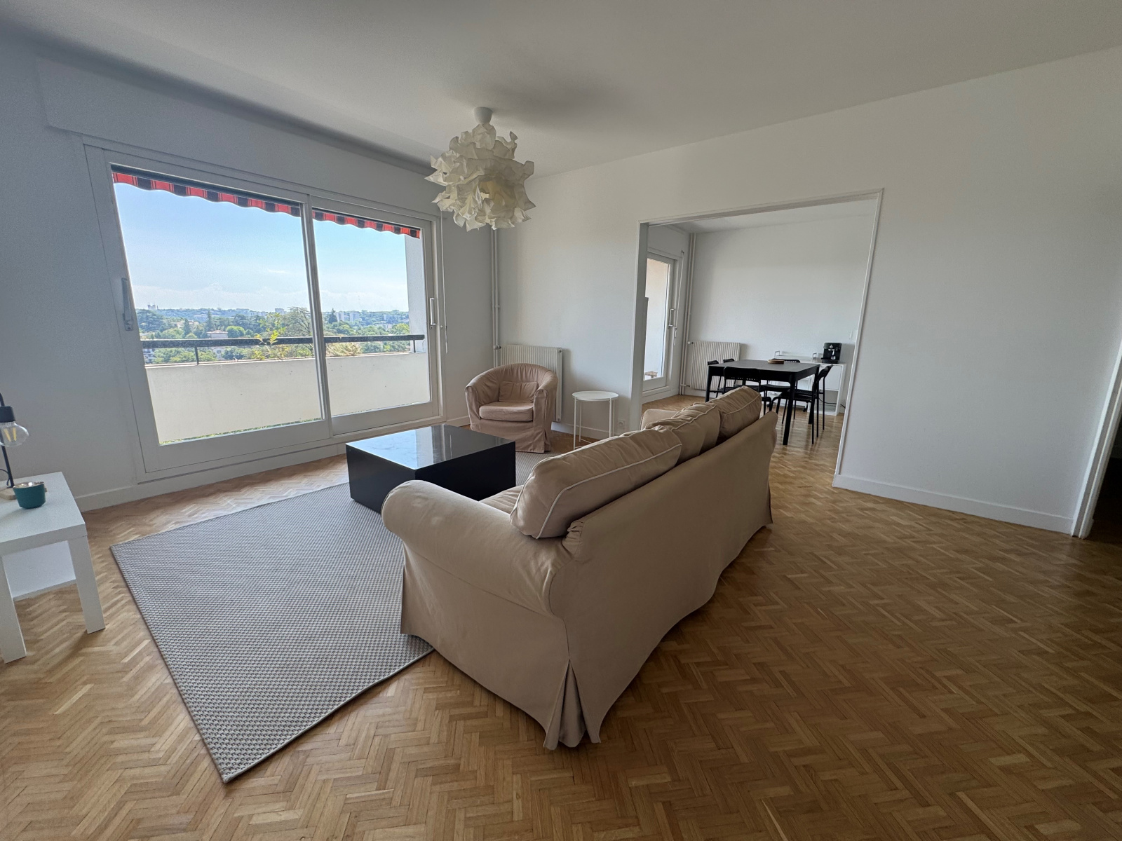 Ecully, chemin des Bruyères, au sein d’une copropriété de standing avec tennis ainsi qu’un grand parc arboré, beau T4 rénové de 99.58m² en étage élevé avec ascenseur. Il se compose d’une entrée donnant accès à un séjour double avec salle à manger et cuisine équipée ouvrant sur une terrasse avec une vue à 180° sur Lyon, une partie nuit avec 3 chambres, 2 salle de bains (avec machine à laver), un wc, et un balcon. L’appartement dispose également d’une place de parking privative en sous-sol. Chauffage et eaux inclus dans les charges.
