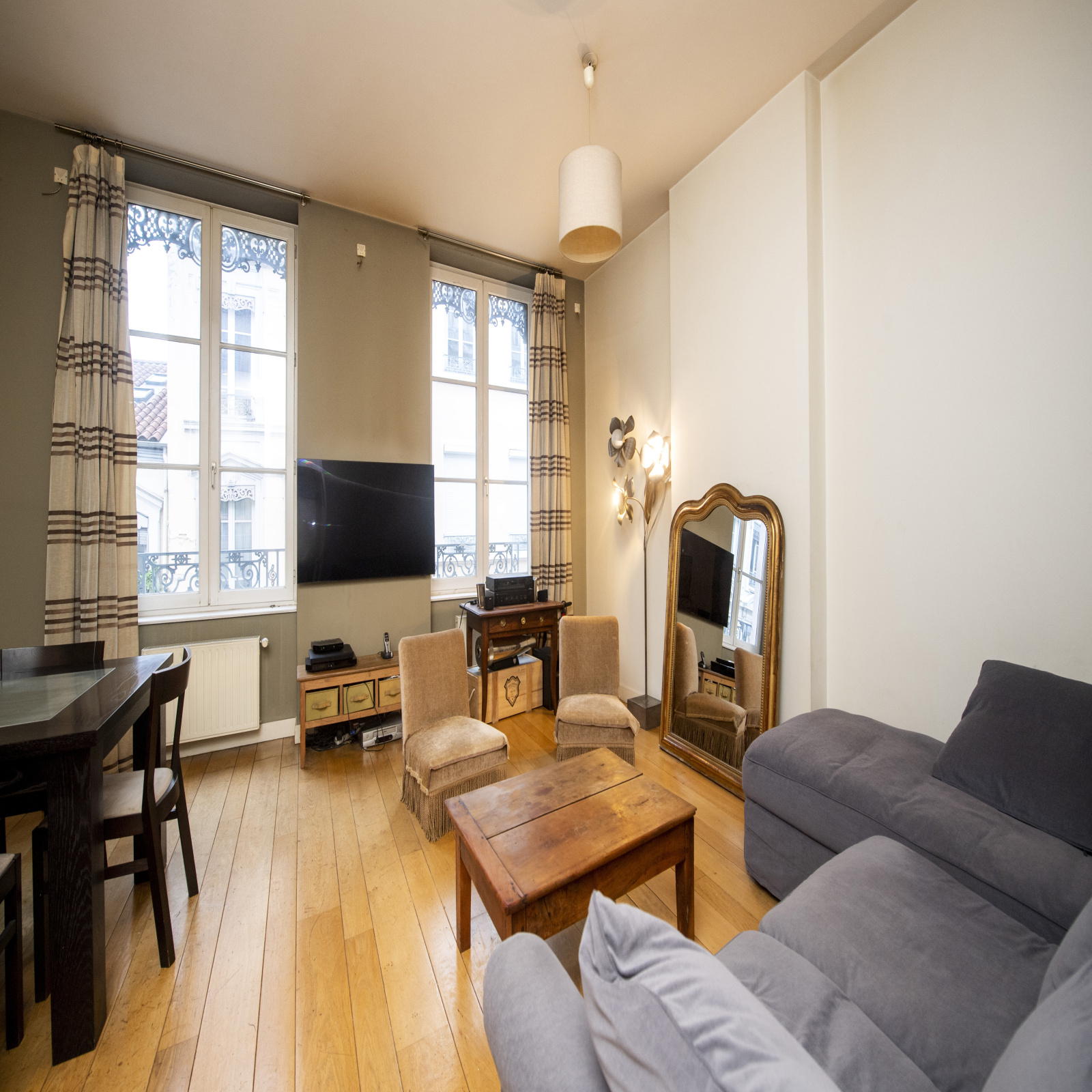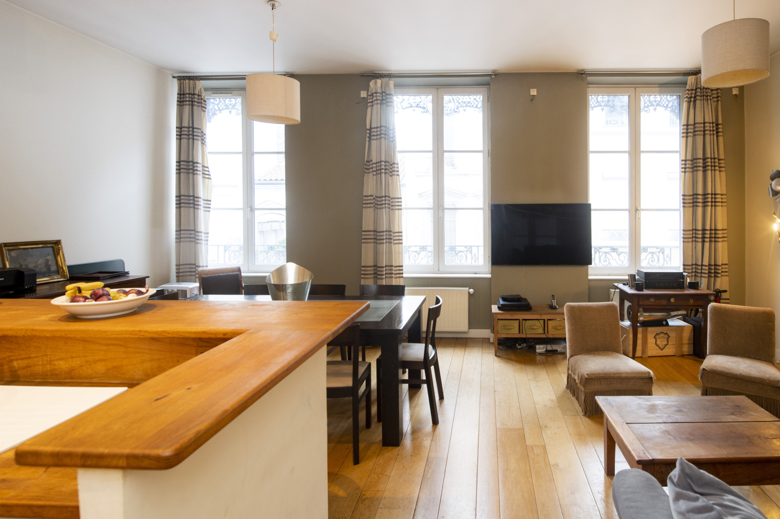 Sur le secteur des Brotteaux, dans une petite rue calme, beaux volumes pour ce grand T2 de 77m² en étage comprenant une entrée desservant une grande pièce de vie très lumineuse avec 3 fenêtres, une cuisine ouverte équipée, une buanderie attenante, une suite avec son dressing et une salle de bain (baignoire et douche), un wc indépendant. L'appartement dispose d'une cave en sous-sol. Calme et lumineux, cet appartement est au pied des transports et commerces. Immeuble en copropriété, 15 lots. Honoraires à la charge du vendeur. Contact Jérémy Mougin 06.24.70.49.23