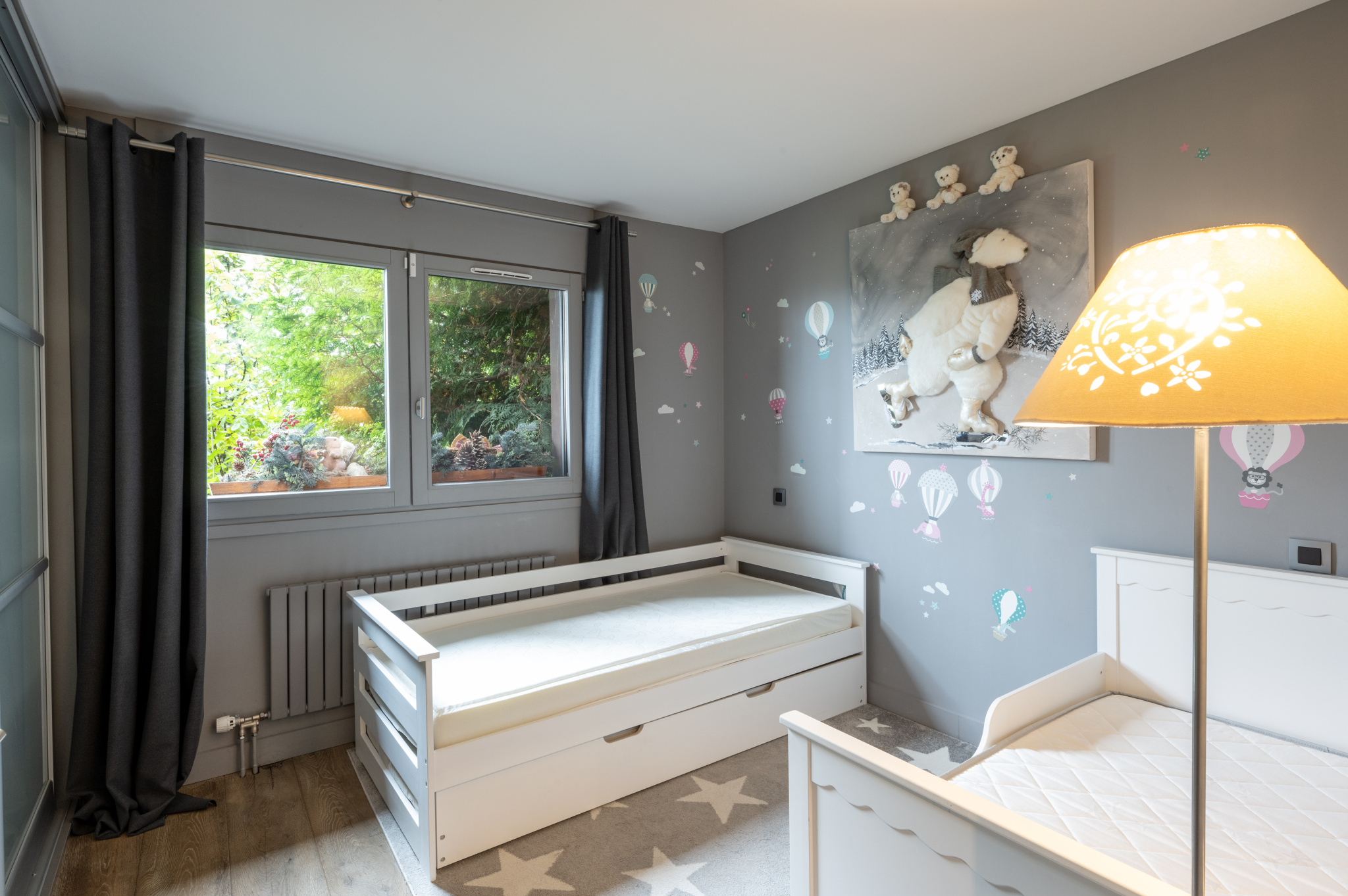 Cet appartement de 148m2 au deuxième étage avec ascenseur est composé d’une entrée, de 3 chambres avec salle de douche et WC chacune, 1 chambre maître avec cheminée, salle de bain et WC, 1 salon avec cheminée, 1 salle à manger, 1 coin TV et une cuisine. De part son positionnement cet appartement bénéficie d’une double exposition avec balcons d’un côté et une terrasse en rez de jardin de l’autre.