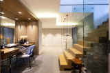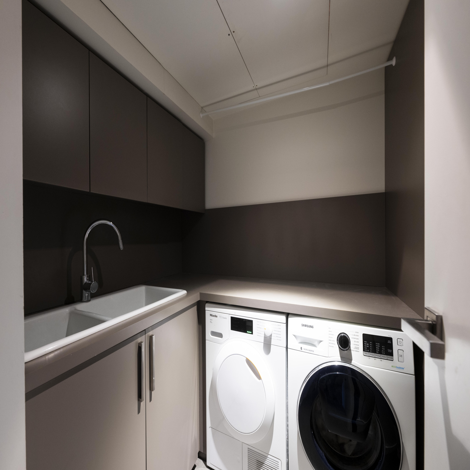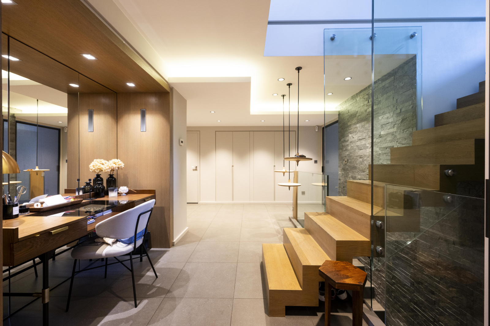 A l'étage inférieur (niveau 2), nous découvrons un home cinéma d'une surface de 42 m², une suite avec salle d'eau, une buanderie, et des toilettes.
